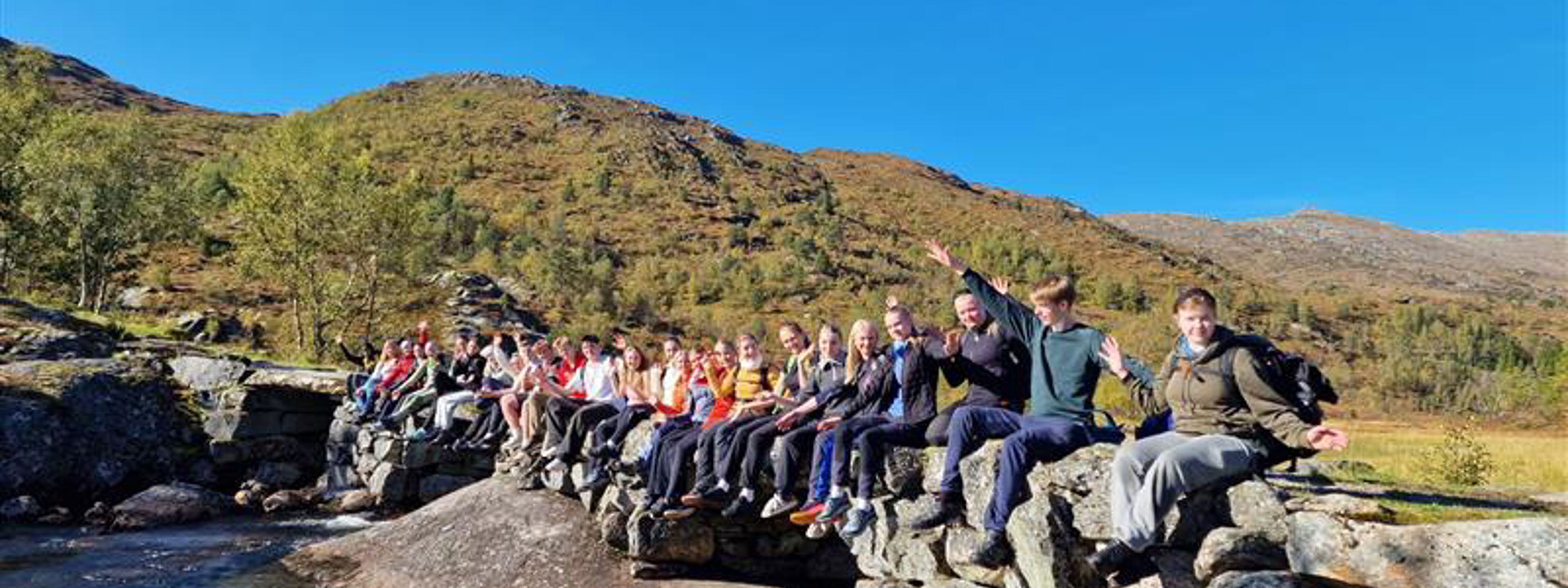 Fredag 26.september '25 hadde 3sta fagdag i kroppsøving. Læreplanen i kroppsøving for vg3 seier mellom anna at vi skal planlegge og gjennomføre uteaktivitet og friluftsliv i nærområdet. Vi skal også samarbeide om å løyse praktiske oppgåver og lære meir om korleis vi kan ha ein helsefremjande livsstil etter avslutta skulegang. Difor har vi gjennom kroppsøvingstimar i vekene før fagdagen samarbeidd om å bestemme turmål og lage turgrupper.